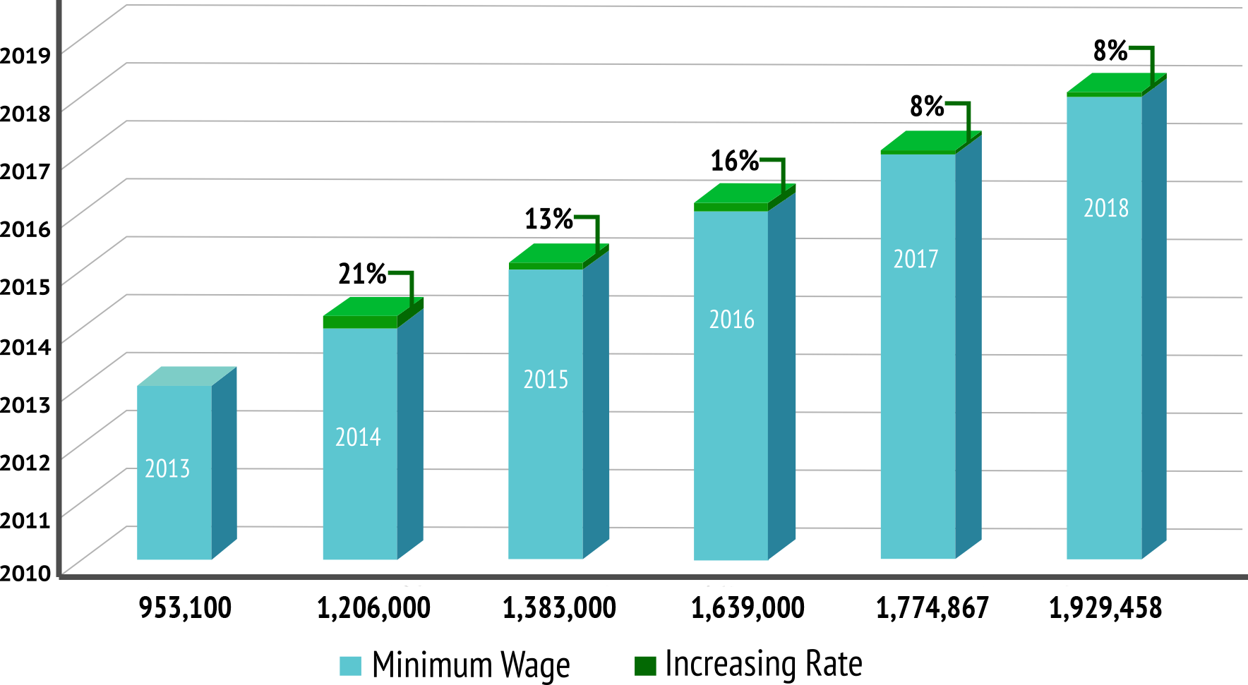 Increasing Rate of Minimum Wage in Kendal 2013 - 2018